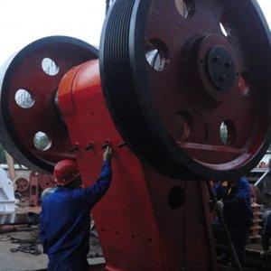 顎式破碎機俗稱顎破,又名老虎口。由動顎和靜顎兩塊顎板組成破碎腔,模擬動物的兩顎運動而完成物料破碎作業(yè)的破碎機。顎式破碎機在礦山、建材、基建等部門主要用作粗碎機和中碎機。按照進料口寬度大小來分為大、中、小型三種,進料口寬度大于600MM的為大型機器,進料口寬度在300-600MM的為中型機,進料口寬度小于300MM的為小型機。顎式破碎機結構簡單,制造容易,工作可靠。顎式破碎機的工作部分是兩塊顎板,一是固定顎板(定顎),垂直(或上端略外傾)固定在機體前壁上,另一是活動顎板(動顎),位置傾斜,與固定顎板形成上大下小的破碎腔(工作腔)?;顒宇€板對著固定顎板做周期性的往復運動,時而分開,時而靠近。分開時,物料進入破碎腔,成品從下部卸出;靠近時,使裝在兩塊顎板之間的物料受到擠壓,彎折和劈裂作用而破碎。