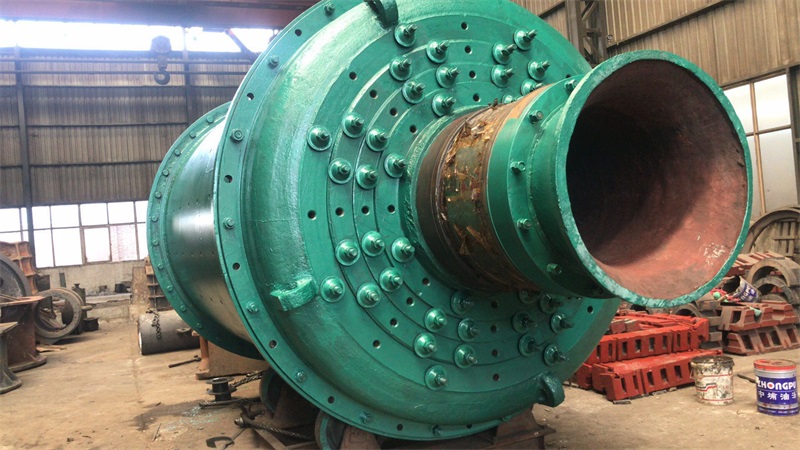 溢流型球磨機(jī)筒體用厚度15-36mm的鋼板焊接而成,在筒體的兩端焊有鑄鋼制造的法蘭盤,用螺栓將端蓋2和3與法蘭盤連接在一起,二者須精密加工和配合,因?yàn)槌休d磨礦機(jī)質(zhì)量的中空軸頸焊在端蓋上。在筒體上開(kāi)有1-2個(gè)人孔,供檢修和更換襯板用。筒體和端蓋內(nèi)部敷設(shè)有襯板5。端蓋上的中空軸頸支承在主軸承4上。主軸承常用的是滑動(dòng)軸承,其直徑很大,但長(zhǎng)度很短。軸瓦用巴氏合金澆鑄,與一般滑動(dòng)軸承不同之處在于僅僅下半部有軸瓦。整個(gè)軸承除軸瓦用巴氏金澆鑄外,其余用鑄鐵制成。由于球磨機(jī)的跨度和載荷很大,將發(fā)生一定程度的撓曲,而且制造和裝配的誤差也難以保證準(zhǔn)確的同心度,因此主軸承制成自動(dòng)調(diào)心滑動(dòng)軸承,為防止軸瓦轉(zhuǎn)位過(guò)大而從軸承座中滑出,在軸承座與軸瓦的球面***放一圓柱銷釘。